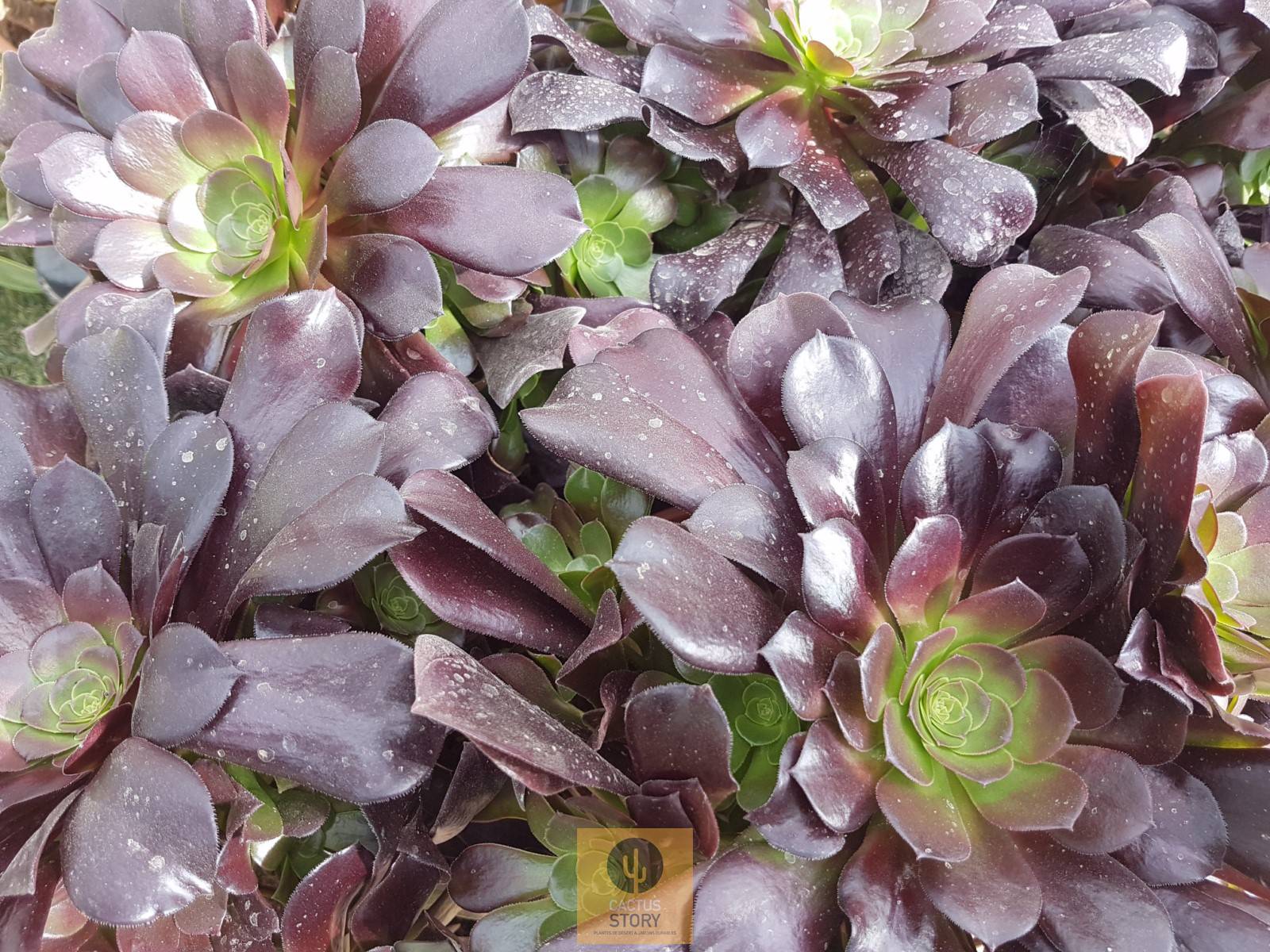 Les Aeonium sont des plantes grasses méditerranéennes, elles peuvent passer l'hiver dehors sans soin ou protection spécifique. Ils peuvent être utilisées comme plantes de rocaille. La période de croissance des Aeonium commence avec les premières fraicheurs d'octobre et dure jusqu'à fin mai. Ce sont des plantes très résistantes à la chaleur. Cette succulente a des feuilles couleur verte au centre, violet aux extrémités tendant vers le violet foncé suivant l'exposition. Attention, l'aspect violet foncé de l' Aeonium n'apparait pas pendant la période de croissance de la plante qui a tendance à prendre une couleur plus verte. L'aeonium perd ses feuilles du bas pendant sa croissance.